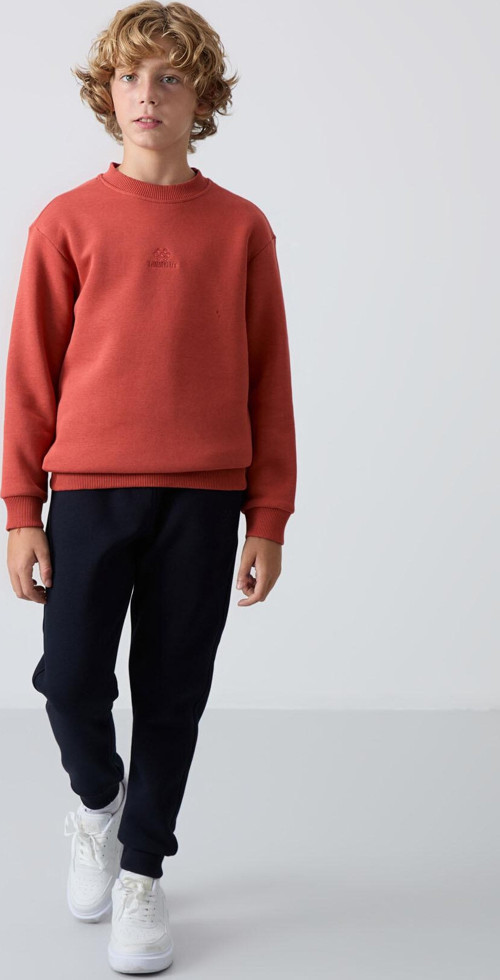 Tommy Life Kiremit-Lacivert Pamuklu Kalın İçi Tüylü Yumuşak Dokulu Standart Fit Nakışlı Erkek Çocuk Eşofman Tak