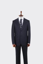 Erkek Lacivert Yünlü Platinium Düz Desen Slim Fit Sivri Yaka Takım Elbise - Image 1