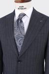 Erkek Lacivert Poliviskon Trend Yelekli Çizgili Desen Slim Fit  Sivri Yaka Takım Elbise - Image 1