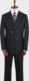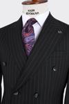 Adimo Slimfit Sivri Yaka Çift Yırtmaçlı İnce Çizgili Kruvaze Takım Elbise