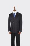 Erkek Lacivert Poliviskon Trend Yelekli Çizgili Desen Slim Fit  Sivri Yaka Takım Elbise - Image 1