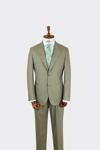 Erkek Haki Polyamide Trend Kruvaze Slim Fit Sivri Yaka Takım Elbise - Image 1