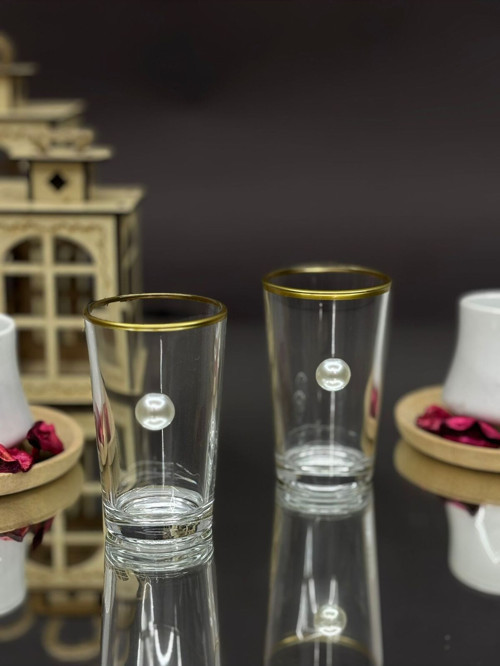 Altın Yaldızlı Beyaz İnci Detaylı Kahve Yanı Bardak 2’li