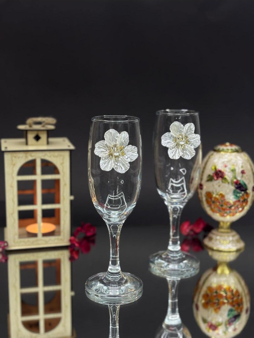 Çiçek Varaklı Kokteyl Kadehi 2’li – (Kahve Yanı Su / Kokteyl Bardağı 190 ml)