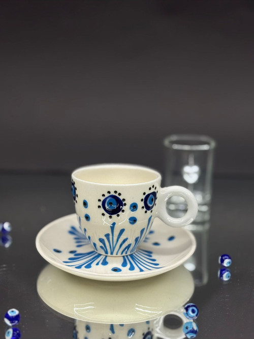 Beyaz rengi ve zarif nazar göz detayı ile şıklığı sofralarınıza taşır.