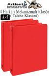 Artlantis Kırmızı 4 Halkalı Klasör 2 Adet A5 PVC Öğrenci ve Ofis Tipi Evrak Sunum Büro Klasörü İç Cepli Otomatik Mekanizmalı Büro