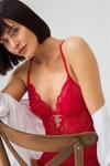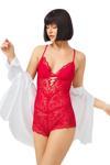 Kırmızı Çıtçıtlı Sırt Dekolte Transparan Kaplı Dantelli Bodysuit