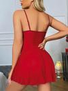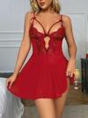 ❤️ Kırmızı Dantel İşlemeli Göğüs İp Detaylı Fantezi Tül Gecelik Takımı ❤️