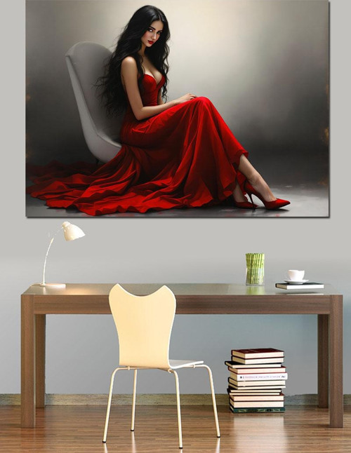 Kırmızı Elbiseli Kadın Dekoratif Kanvas - Mdf Ahşap Tablo