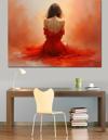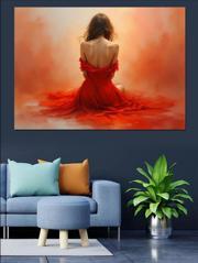 Kırmızı Elbiseli Kadın Dekoratif Kanvas - Mdf Ahşap Tablo