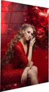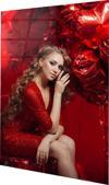 Kırmızı Elbiseli Kadın ve Balonlar Cam Tablo | Hediyelik, Dekoratif, Ofis, Mutfak