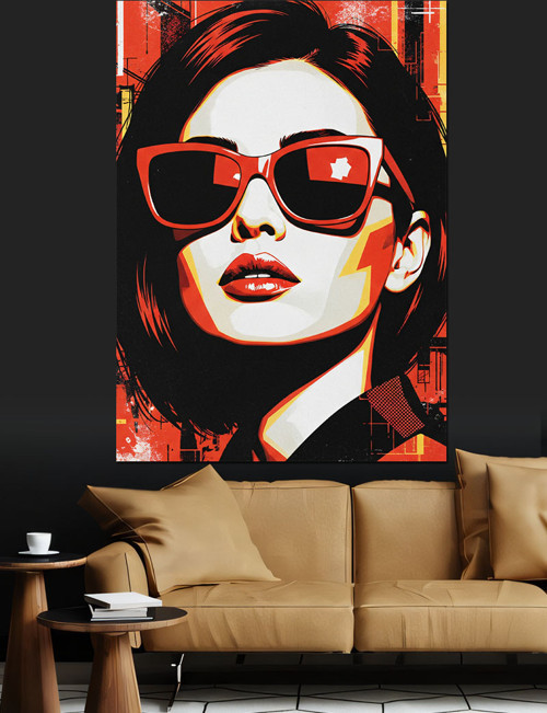 Kırmızı Gözlüklü Siyah Saç Dekoratif Kanvas - Mdf Ahşap Tablo