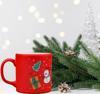 Kupa, üzerinde sevimli bir kardan adam ve yılbaşı süsleri ile dikkat çekiyor.
