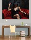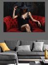 Kırmızı Koltukta Siyah Kadın Dekoratif Kanvas - Mdf Ahşap Tablo