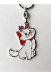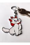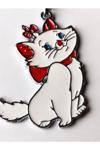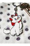 Kırmızı Kurdelalı ve Papyonlu Beyaz Şirin Kedi Metal Anahtarlık – Sevimlilik ve Zarafetin Birleşimi