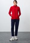 Tommy Life Kırmızı-Lacivert Kalın Yumuşak Dokulu Dik Yaka Oversize Nakışlı Polar Kadın Eşofman Takım -95339