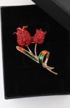 Keeba Kırmızı lale broş. Yaka iğnesi lale broş. Taşlı tasarım lale broş. Kadın broş. Broş. Lale broş.