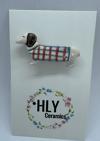 Kırmızı ve mavi ekose kazak deseniyle neşeli bir karakter taşıyan bu el yapımı seramik köpek, sıcak bir detay arayanlar için mükemmel bir aksesuar.