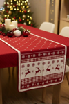 🎄 Kırmızı Geyik Desenli Yılbaşı Masa Runnerı | 50x160 cm | Pamuk Polyester Kumaş