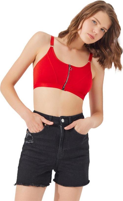 Kırmızı Pamuklu Ayarlanabilir Askılı Fermuarlı Bralet Büstiyer