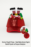 Toyfest Kırmızı Payetli Noel Şapkası – Çizme Figürlü, Ponpon ve Fiyonk Detaylı Her Yaşa Uygun Parti Aksesuarı