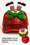 Kırmızı payetli yüzeyi, minik ponponlar, yeşil fiyonk ve yukarıdan çıkan sevimli Noel Baba çizme detayıyla dikkat çeker. Esnek yapısı sayesinde çocuklardan yetişkinlere kadar herkes tarafından rahatlıkla kullanılabilir.