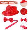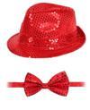 Kırmızı Payetli Şapka ve Papyon Seti – Parıltılı Parti Aksesuarı