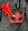 Universal Kelebek ve Çiçek İşlemeli Venedik Maskesi Kırmızı Renk 10x18 cm