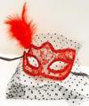 Kırmızı Renk Dantelli Duvaklı Parti Maskesi Balo