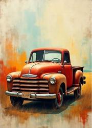 Kırmızı Retro Kamyon Desenli Mdf Tablo 25cmX 35cm