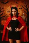 🎃 Kırmızı Şeytan Kostüm Seti – 120 cm Yakalı Pelerin + Şeytan Boynuzlu Taç 🎃