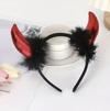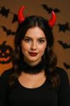 1 Adet Parlak Kırmızı Şeytan Boynuzlu Taç (Siyah Tüy Detaylı)