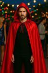 Göz alıcı kırmızı rengiyle dikkat çeken 120 cm uzunluğundaki kapüşonlu saten pelerin, kostüm partilerinde, tiyatro gösterilerinde, fotoğraf çekimlerinde ve Cadılar Bayramı etkinliklerinde tarzınızı tamamlayacak mükemmel bir aksesuardır.