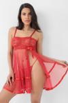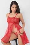 Sistina-835 Kırmızı Şifon Pileli Dantelli Gecelik