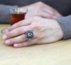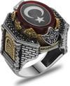 Gümüş Hediye Al Kırmızı Sıkma Kehribar Üzerine Ayyıldız İşlemeli Yanları Kale Tasarım 925 Ayar Gümüş Erkek Yüzük