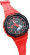 Canlı kırmızı rengiyle dikkat çeken silikon kayışlı spor saat, günlük kullanım için ideal bir aksesuardır
