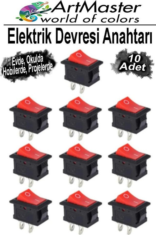 ArtMaster Kırmızı Siyah Elektrik Devresi Anahtarı 10 Adet On Off Açma Kapama Devre Anahtarı Aç Kapa Deney Elektirik Açma Kapama