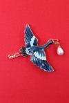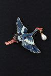 Keeba Kırmızı taçlı incili turna broş. Yaka iğnesi turna broş. Unisex. Erkek broş. Kadın broş. Turna broş.