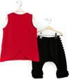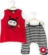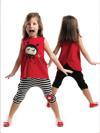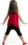 2 Parça Takım. Düşük Ağ Kesimli, Paçası Aplikeli Kapri Pantolon Ve Ön Yüzü Baskılı, Arka Yüzü Kanat Kesimli T-Shirt.