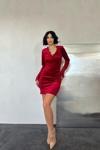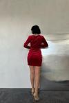 Kırmızı Yaka Ve Kol Dantelli Mini Elbise