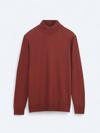 Kip Kırmızı Yarım Balıkçı Yaka Düz Örgü Yün Karışımlı Triko Kazak