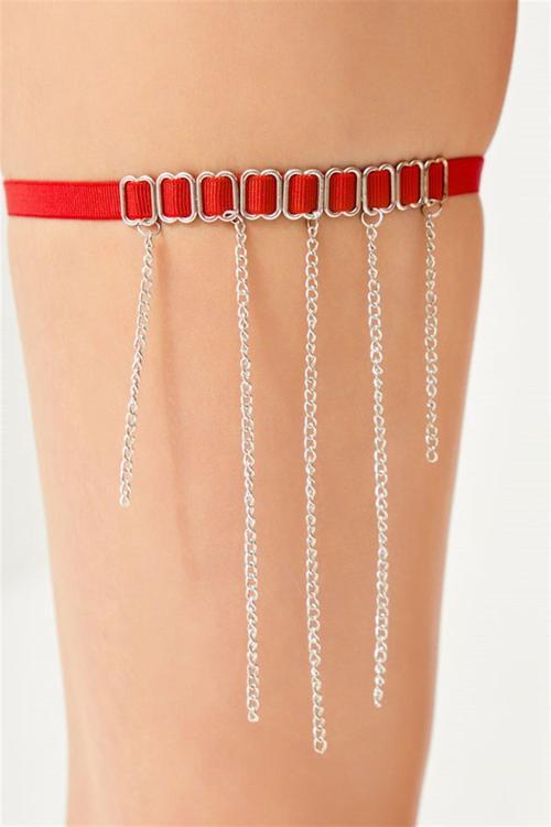 Kırmızı Zincir Detaylı Kadın Bacak Aksesuarı