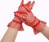 Kısa Boy Güpürlü Kırmızı Puantiyeli Tül Eldiven Kırmızı Renk
