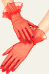 Kısa Boy Güpürlü Tül Eldiven Kırmızı Renk