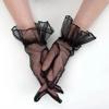 Kısa Boy Likralı Güpürlü Yetişkin Tül Eldiven Siyah Renk (5365)