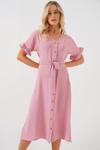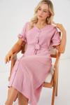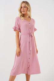 Kısa Kol Düğmeli Elbise 2555 - Pudra