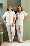 Kadın Pamuklu Düğmeli Pijama Takımı - Kalpli / Çiçekli / Fiyonklu Desen - M'den 6XL Bedene