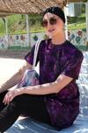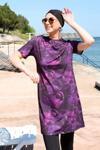 Sıfır Kol Desenli Yarım Tesettür Mayo Mor - Image 1