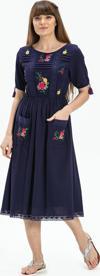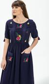 Düz Bisiklet Yaka Kadın Mavi Etnik Desenli Elbise - Image 1