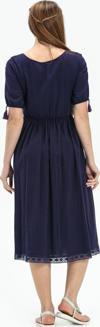Kazax Düz Bisiklet Yaka Kadın Mavi Etnik Desenli Elbise